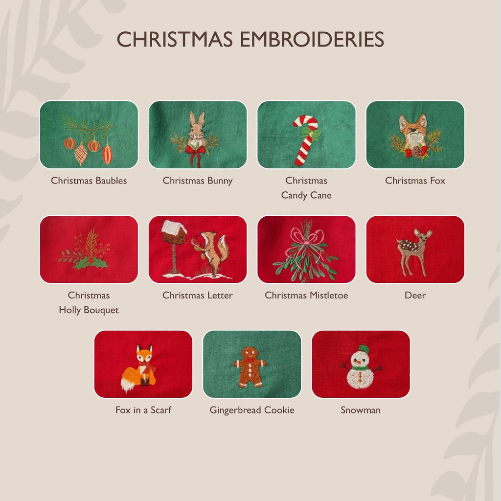 Cherry Check Linen Top with with Petal Collar in Meadow Green Linen with "Strawberry Bouquet" Embroidery